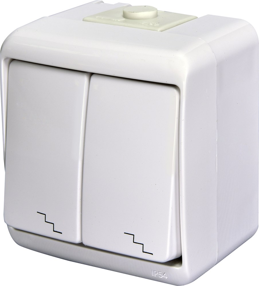 Выключатель 2-клавишный "лестничный" VHE-7 (белый, IP54)