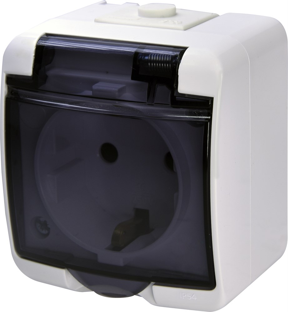 Розетка 1-я с з/к Schuko RHE-1sd (белая/прозрачная крышка, IP54)