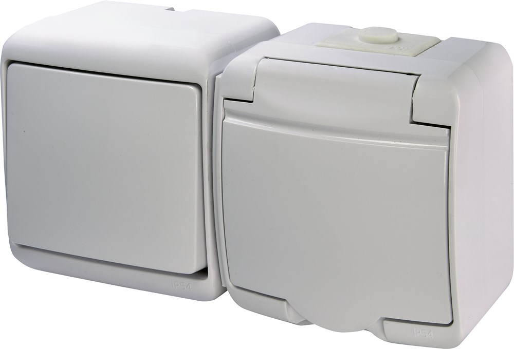 Микс гориз.: 1-кл.выкл.+ 1-я розетка с з/к VRHH-1s (белая/бел. крышка)