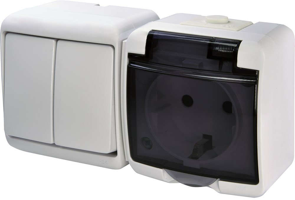 Микс гориз.: 2-кл.выкл.+ 1-я розетка с з/к VRHH-2sd (белая/прозр. крышка)