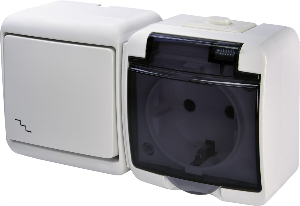 Микс гориз.: Лестн.выкл.+ 1-я розетка с з/к VRHH-3sd (белая/прозр. крышка)