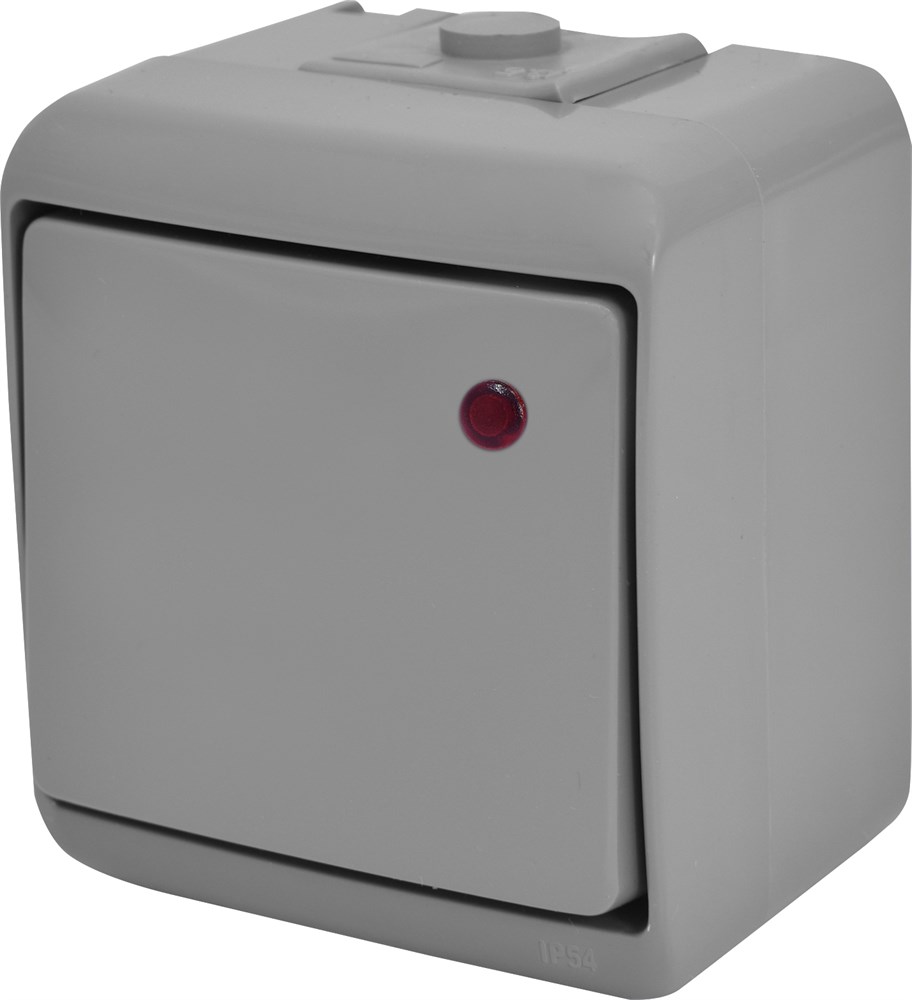 Выключатель 1-клавишный с подсветкой VHE-1L-SR (серый, IP54)