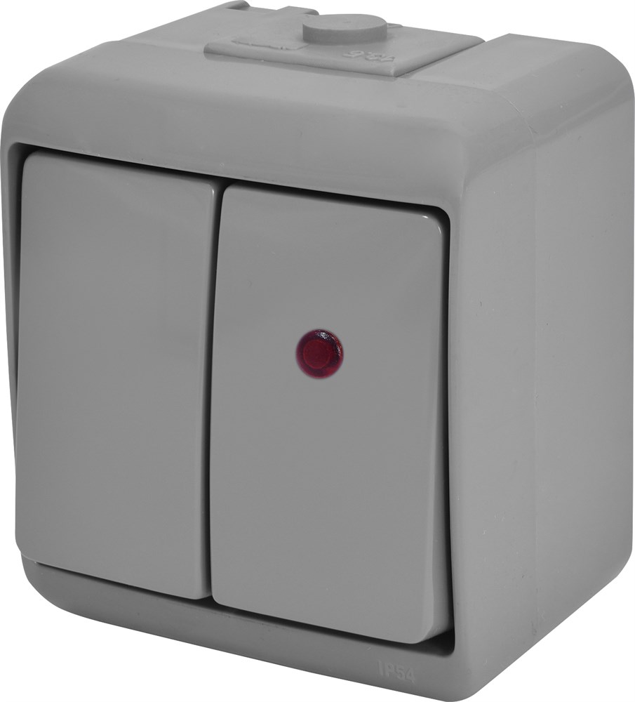 Выключатель 2-клавишный с подсветкой VHE-2L-SR (серый, IP54)
