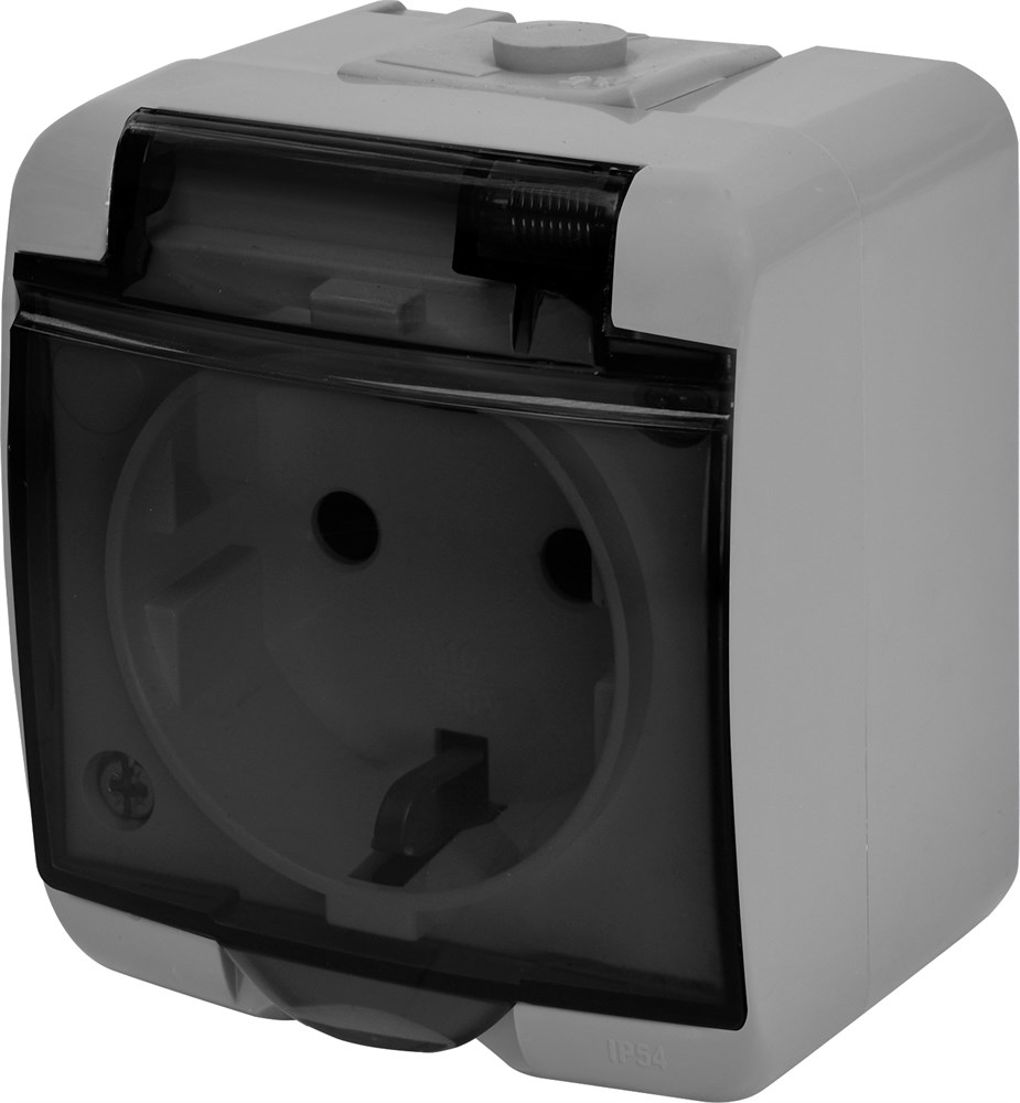 Розетка 1-я с з/к Schuko RHE-1sd-SR (серая/прозрачн. крышка, IP54)