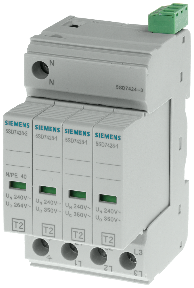 Разрядник T2, UN 240/400 V, UC 350/264 V AC, втычной зашитный модуль, 3+1 цепь (TN-S, TT), ширина 49.2 mm