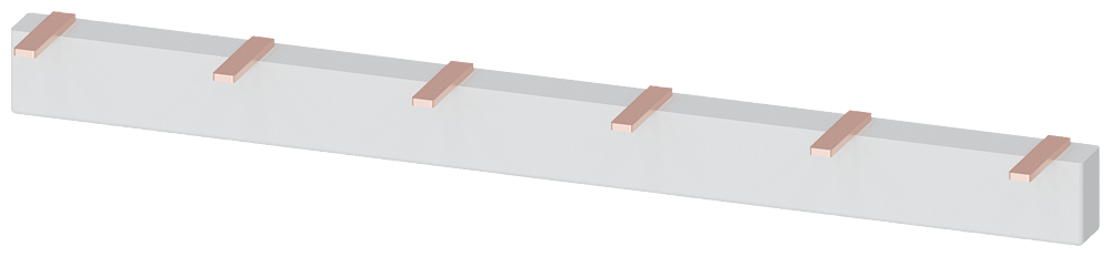 Штырьевая шина 3-фаз. 10 mm2, 12 мод. серая Pin busbar, 3-phase 10 mm2, 54 MW, insulation gray Fixed length 210 mm Pin spacing 2 MW connection: 6 x 3-phase