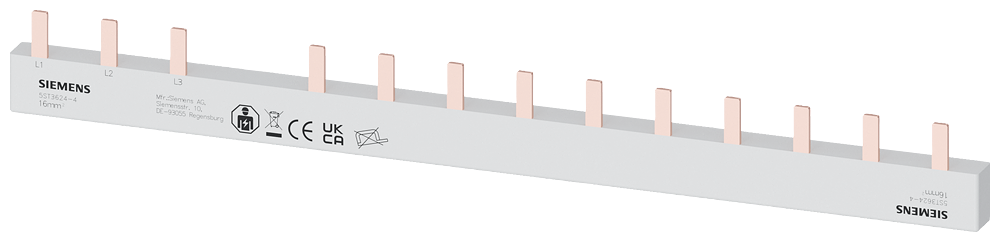 Pin Busbar, 10mm2 connection: 3p (RCCB N-right) 1x RCCB 4-pole + 10x MCB 1-pole touch protected 14 MW fixed length