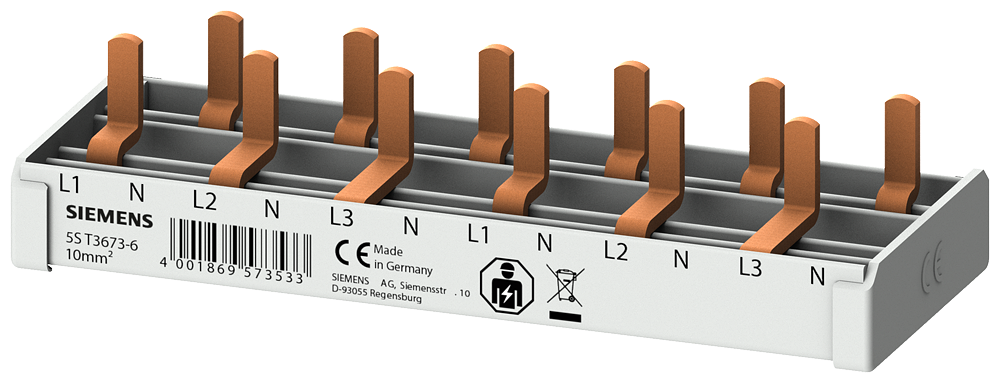 Компактная пин шина, 10mm2 connection 3p/N 6x компактн. устр., 1-пол. защ.от прикосн.6 мод. фикс.длина