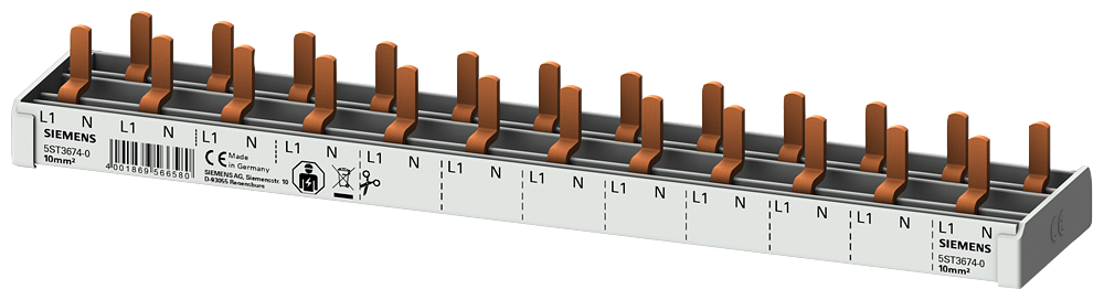 Компактная Pin шина, 10mm2 сечение: 1p/N 12x комп.устр. 1-пол. защ.от прикосн. 12 мод. фикс.длины
