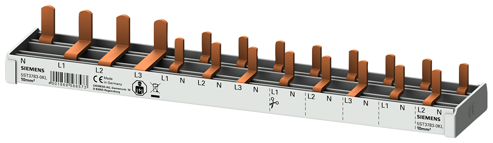 Компактная Pin шина, 10mm2 сечение: 3p/ N (N-слева) 1x УЗО 4-пол. + 8x комп.устр. 1-пол. защ.от прикосн. N-left 12 MW обрезаемая