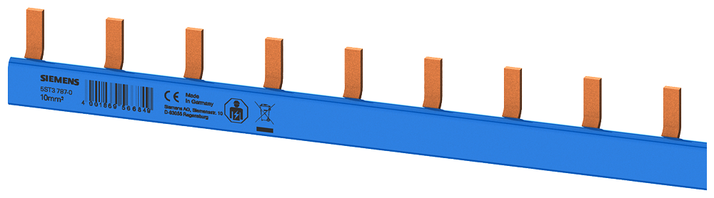 Компактная Pin шина, 10mm2 N (синий) авт.выкл. 1/N 1-пол. защ.от прикосн. синий 1000mm обрезаемая