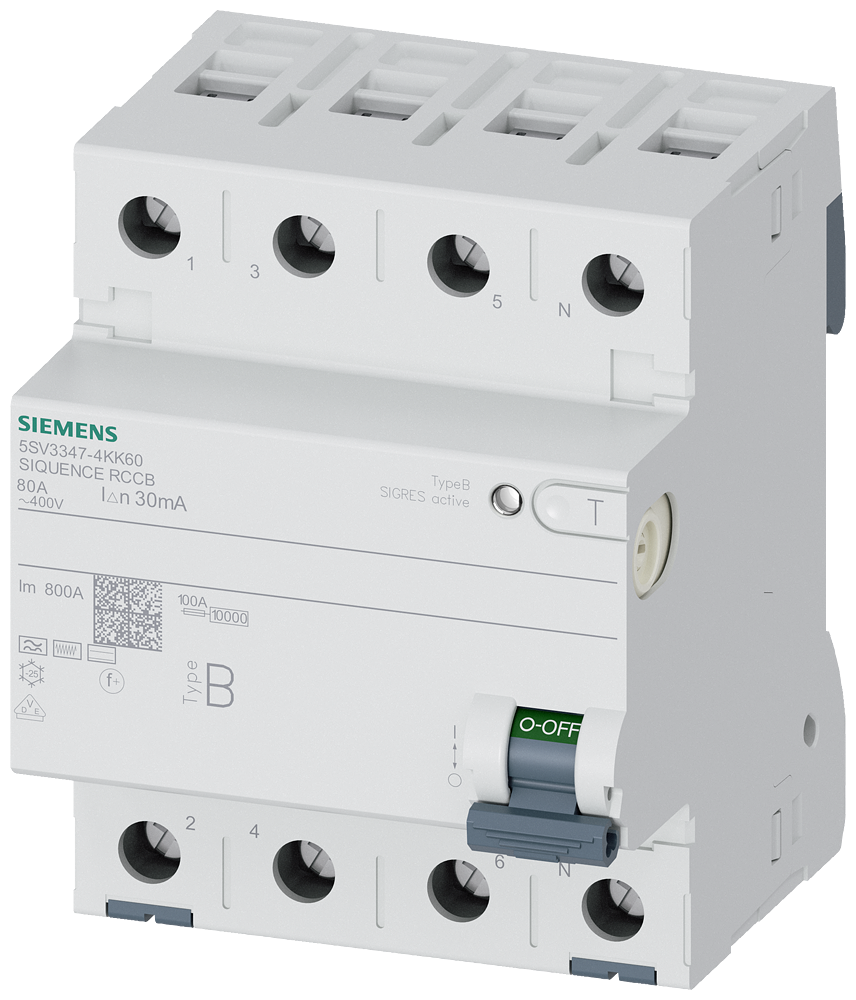 Residual current operated circuit breaker, 4-pole, Type B, In: 80A, 30mA, 6mA DC, Un AC: 400V, Mobile Installations