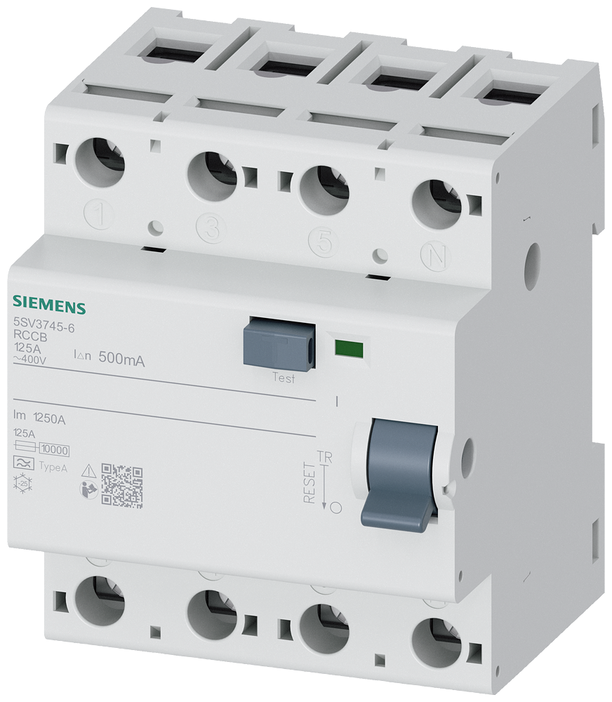 Residual current operated circuit breaker, 4-pole, type A, In: 125 A, 500 mA, Un AC: 400 V