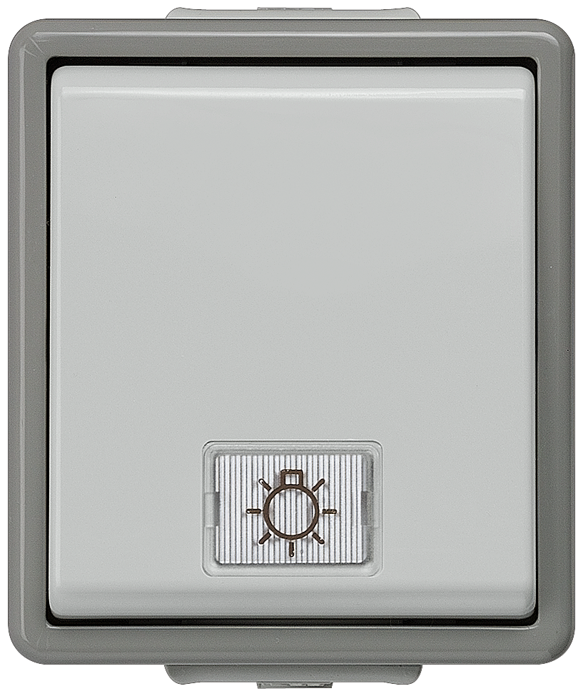 DELTA FLACHE ВЫКЛЮЧАТЕЛЬ 10А 250В НАВЕСНОГО МОНТАЖА IP44 С ЗАЩИТОЙ ОТ БРЫЗГ С КОНТРОЛЬНОЙ ЛАМПОЙ 1 КЛАВИША (В КОМПЛ. 2 ОКНА ПРОЗРАЧНОЕ И С СИМВОЛОМ)