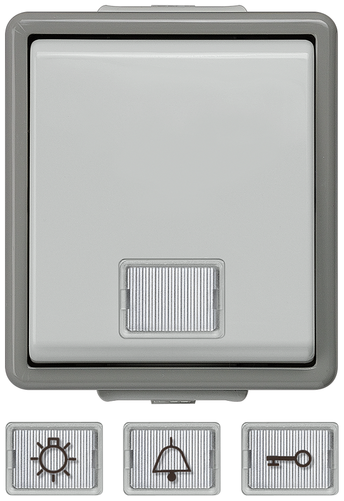 DELTA FLACHE IP44 КНОПКА 10А 250V С ОКНОМ (БЕЛЫЙ, ЗВОНОК, КЛЮЧ) НАВЕСНОГО МОНТАЖА