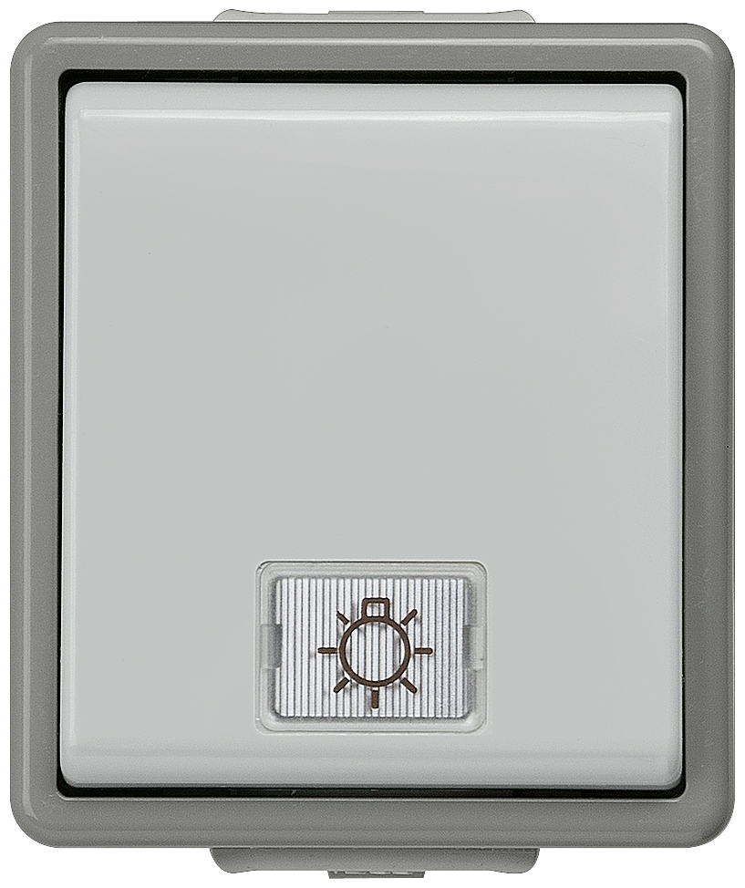 DELTA FLACHE IP44 КНОПКА С ЛАМПОЙ 10А 250V С 2 ОКНАМИ (БЕЛЫЙ,ПРОЗРАЧНЫЙ) НАВЕСНОГО МОНТАЖА