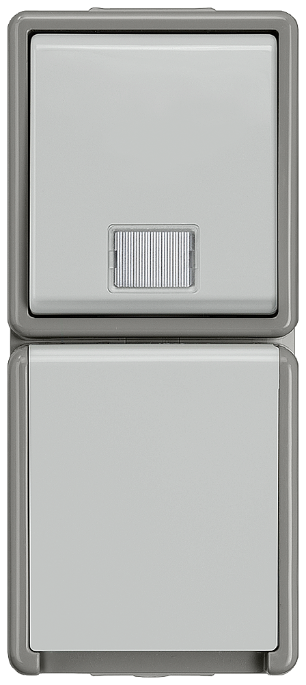 DELTA FLAECHE IP44 КОМБИНАЦИЯ КНОПКИ И РОЗЕТКИ SCHUKO С ЗАЩИТОЙ ОТ ПРИКОСНОВЕНИЯ РАЗМЕРЫ 151X66X54 MM