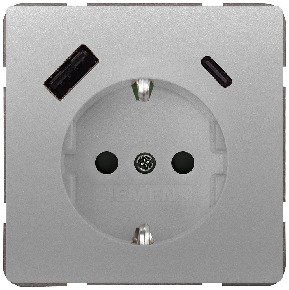 DELTA style platinum metallic USB-SCHUKO socket outlet 2 USB A+C Power: Up to 18W