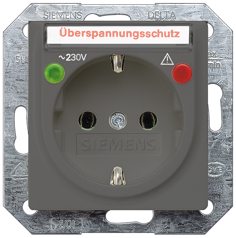 DELTA I-SYSTEM ЧЕРНЫЙ МЕТАЛЛИК РОЗЕТКА SCHUKO 10 DC/16A AC 250В C ЗАЩИТНЫМ КОНТАКТОМ C БЕЗРЕЗЬБОВЫМИ КОНТАКТНЫМИ ЗАЖИМАМИ С ЗАЩИТОЙ ОТ ПЕРЕНАПРЯЖЕНИЙ, ФУНКЦИОНАЛЬНЫМИ ИНДИКАТОРАМИ И ПОЛЕМ ДЛЯ НАДПИСИ ЭЛ.-МЕХ.ЧАСТЬ