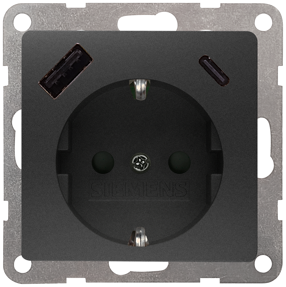 DELTA i-system carbon metallic USB-SCHUKO socket outlet 2 USB A+C Power: Up to 18W
