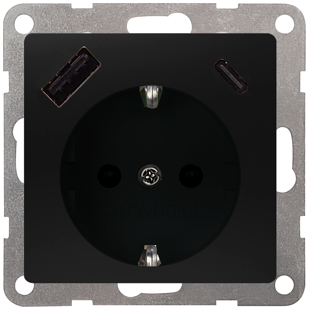DELTA i-system soft black USB-SCHUKO socket outlet 2 USB A+C Power: Up to 18W
