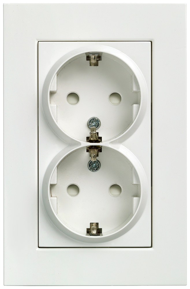 DELTA MIRO ДВОЙНАЯ РОЗЕТКА SCHUKO ТИТАНОВОБЕЛЫЙ 10/16A 250V С ВИНТ. И БЕЗВИНТ КЛЕММАМИ, С ДОП.ЗАЩИТОЙ ОТ ПРИКОСНОВЕНИЯ, БЕЗ ЛАПОК