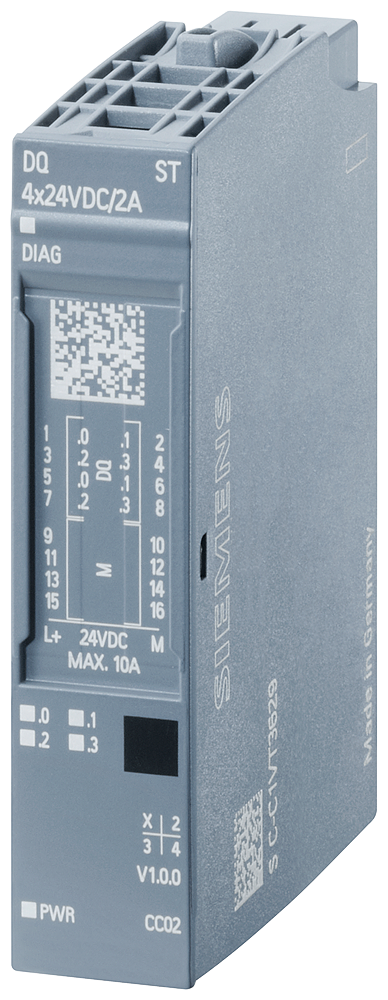 SIPLUS ET 200SP, модуль дискретных выходов DQ 8X24VDC/0,5A ST, рабочая температура -40 ... +70°C, со стойким покрытием, на основе 6ES7132-6BD20-0BA0 . Модуль дискретных выходов DQ 4X =24 В/2 А, с расширенными функциями, для установки на базовый блок типа A0, цветовой код CC02, диагностика модуля
