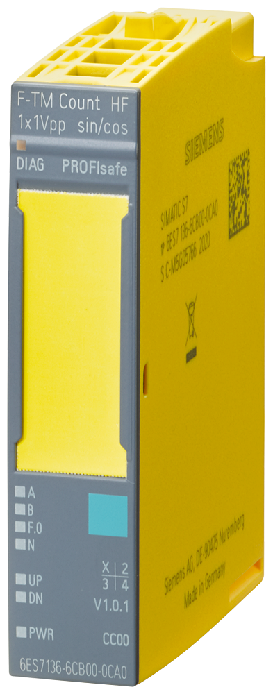 SIPLUS ET 200SP F-TM Count HF based on 6ES7136-6CB00-0CA0 with conformal coating -25...+60 °C . 1x1 Vpp sin/cos HF, PROFIsafe, 1 channel, for incremental rotary encoders, sin/cos 1 Vpp, suitable for BU type A0, pack quantity: 1 unit