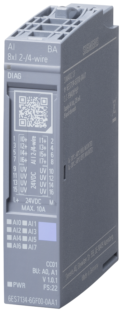 SIPLUS ET 200SP, модуль аналоговых входов AI 8xI 2-/4-W BA TX Rail, для применения на ж/д, рабочая температура -40 .. . +70°C, TX до +85°C в течение 10 минут, с конформным покрытием, на основе 6ES7134-6GF00-0AA1 . Модуль аналоговых входов, 8 токовых входов с 2х/4х-проводным подключением, с базовыми функциями, для установки на базовые блоки типа A0, A1, цветовой код CC01, диагностика модуля, 16 бит