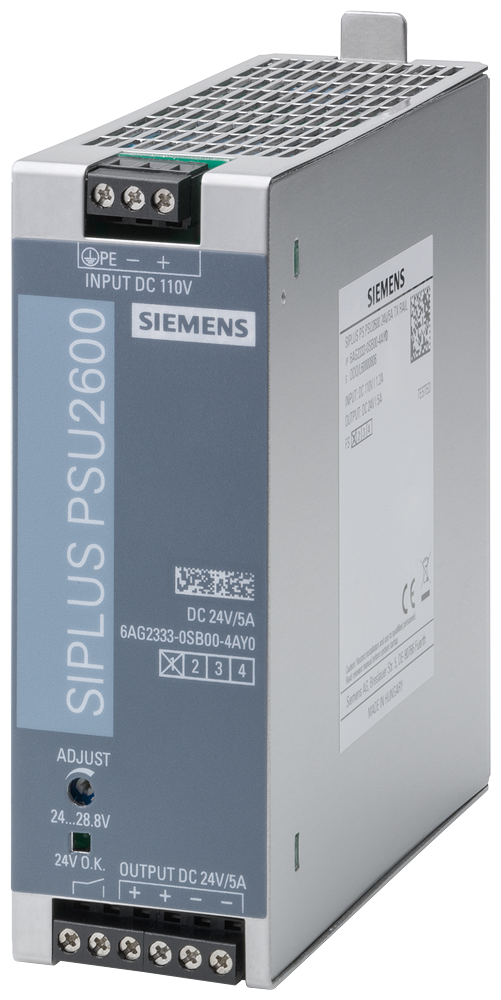 SIPLUS PSU2600 24 V/5 A TX Rail, для применения на ж/д, рабочая температура -40 .. . +70°C, с конформным покрытием . Cтабилизированный блок питания. Вход: =110 В Выход: =24 В/5 A