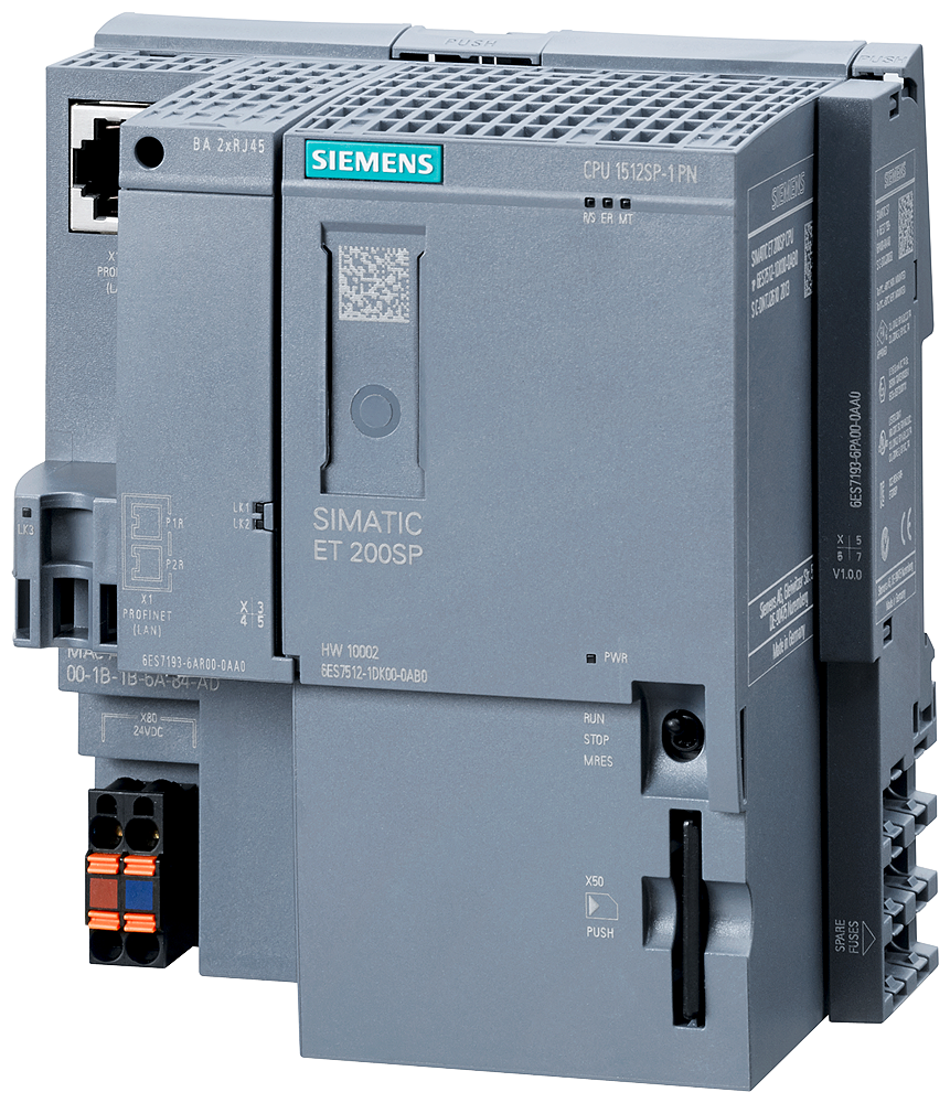 SIPLUS ET 200SP, ЦПУ CPU 1512SP-1 PN Rail для ET 200SP, рабочая температура -25 ... +60°C, T1 до +70°C в течение 10 минут, для тяжёлых условий применения на ж/д, со стойким покрытием, на основе: 6ES7512-1DK01-0AB0 . ЦПУ с рабочей памятью 300 кБ для программы и 1 МБ для данных, 1. интерфейс: PROFINET IRT с 3х-портовым коммутатором, необходима карта памяти SIMATIC MC, для портов 1 и 2 необходим сетевой адаптер BA