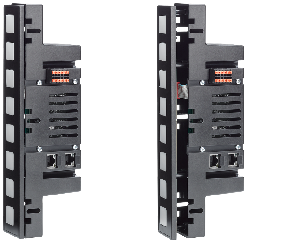 SIMATIC HMI KP8 PN LX, 8 short-stroke switches long, 1-6 mm sheet thickness, PN interfaces, black neutral design, 8 configurable DI/DO pins, 24 V DC can be looped through, parameterizable as of STEP 7 V5.5