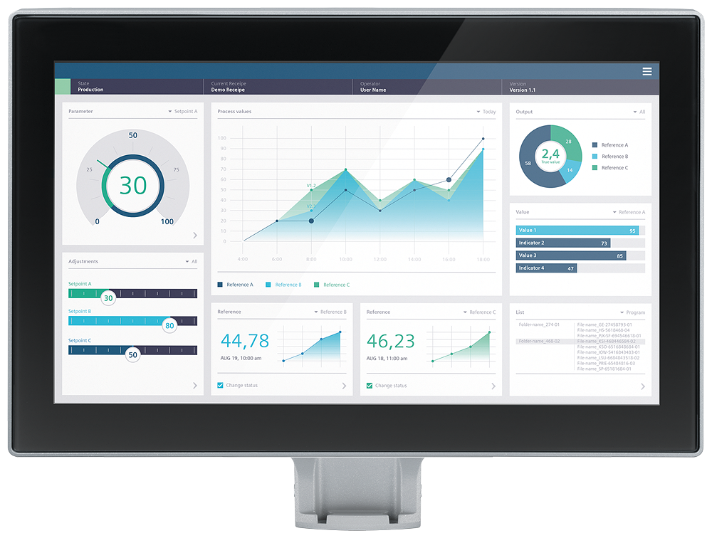 SIMATIC HMI MTP1500 PRO, for supporting foot (expandable, flange at bottom), neutral front, 15.6" widescreen TFT display, 16 million colors, PROFINET interface, configurable as of WinCC Unified Comfort V18, contains open-source software, which is provided free of charge