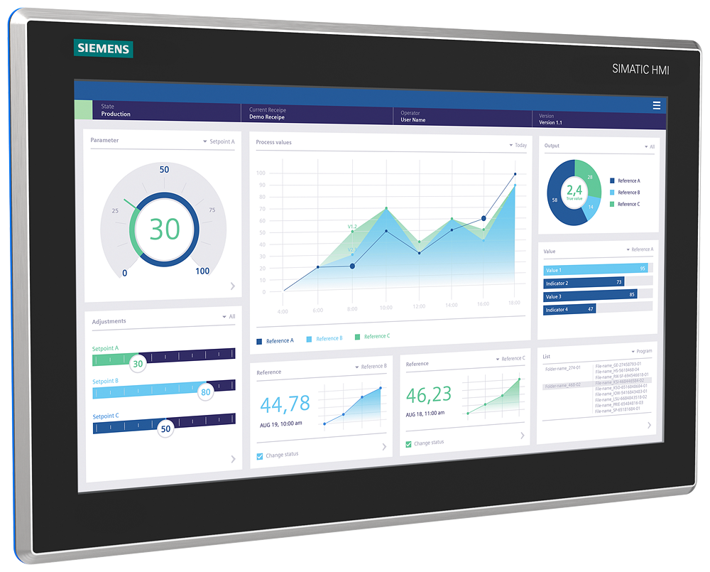 SIMATIC HMI MTP1900 Unified Comfort Panel hygienic, IP69, stainless steel, hygienic design, 18.5" widescreen TFT display, 16 million colors, touch operation, blue FDA-compliant gasket, increased impact protection with splinter protection display front according to directives DIN EN 1672-2, FDA 21 CFR 177.2006, PROFINET interface, configurable as of WinCC Unified Comfort V16, contains open-source software, which is provided free of charge see enclosed Blu-Ray