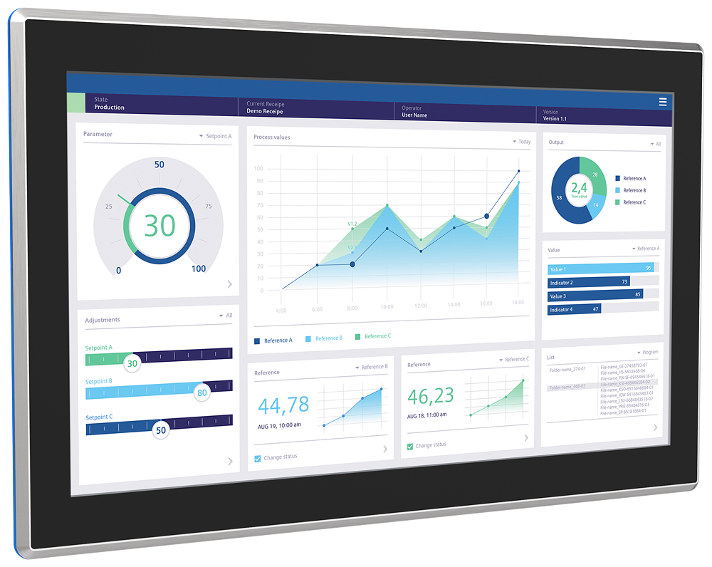 SIMATIC HMI MTP2200 Unified Comfort Panel hygienic, neutral design, IP69, stainless steel, hygienic design, 21.5" widescreen TFT display, 16 million colors, touch operation, blue FDA-compliant gasket, increased impact protection with splinter protection display front according to directives DIN EN 1672-2, FDA 21 CFR 177.2006, PROFINET interface, configurable as of WinCC Unified Comfort V17, contains open-source software, which is provided free of charge see enclosed Blu-Ray