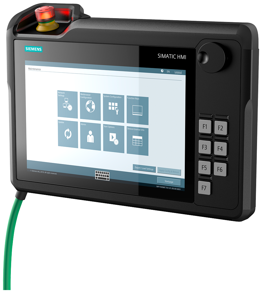 SIMATIC HMI IWP10F Mobile WebClient, 10.0" TFT display, 1280x800 pixels, 16 million colors, multi-touch, 7 function keys, handwheel, PROFINET/Industrial Ethernet interface, USB, acknowledgment button, EMERGENCY STOP button -- for the lower performance range such as LOGO or PLC, only suitable for Unified with restrictions