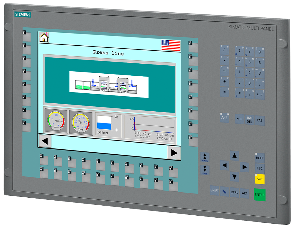 SIMATIC MP 377 12" KEY, КЛАВИАТУРНАЯ МУЛЬТИПАНЕЛЬ, ОС WINDOWS CE 5.0, 12-ДЮЙМОВЫЙ ЦВЕТНОЙ TFT-ЭКРАН, 12 МБ ПАМЯТЬ ПОЛЬЗОВАТЕЛЯ, НАСТРОЙКА В СРЕДЕ WINCC FLEXIBLE 2007, АЛЮМИНИЕВАЯ ФРОНТАЛЬНАЯ ЧАСТЬ, С СТАНДАРТНЫМИ ДЕРЖАТЕЛЯМИ