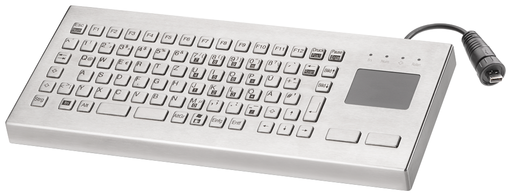USB-клавиатура международная, KV25605 INOX с IP67 USB-разъемом типа A, в комплекте защитный колпачок, антивандальная, настольная клавиатура для устройств с подходящим интерфейсом, нижняя часть клавиатуры с монтажными опциями, дальнейшая информация, количество и комплектация: см. технические данные
