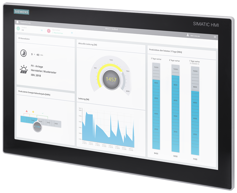 SIMATIC IPC PX-39A (panel PC), Intel Xeon W-11155MLE (1.8/3.1 GHz, 4C/8T), 4 x USB, 4 x Ethernet, 22" multi-touch neutral (1920 x 1080), 8 GB RAM, M.2 SSD 256 GB Eco, Windows 10 IoT Enterprise 2021 LTSC, 24 DC industrial power supply (premium, power failure, isolated)