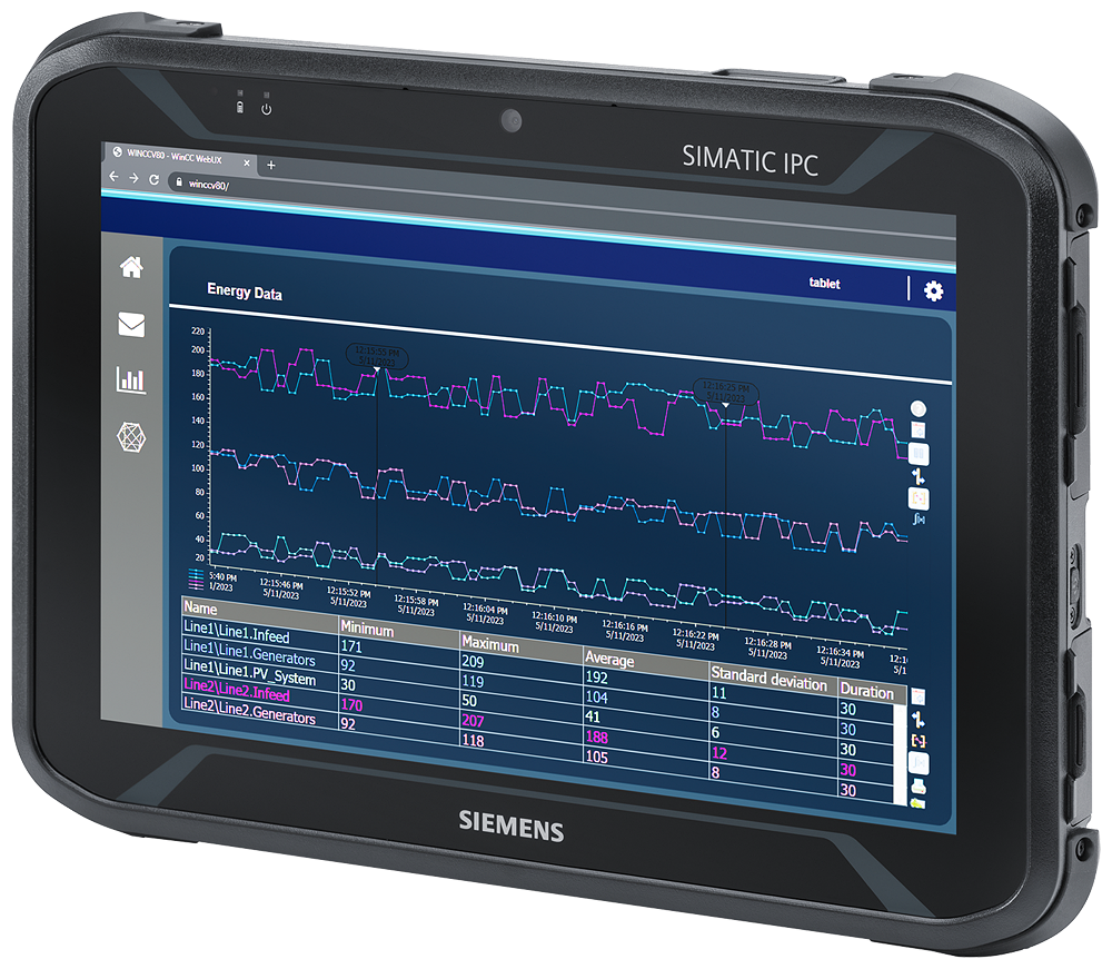 SIMATIC IPC MD-34A with type C PD 10.1 multi-touch 512 GB SSD, 16 GB RAM, Intel Core i5-11th Windows 10 IoT Enterprise LTSC 21H2 resolution: 1920x1200 pixels brightness: 800 cd/m2 Wi-Fi, Bluetooth built-in global 4 G/LTE module built-in GPS & GLONASS with 3,500 mAh battery; you must select your power supply cord: EU: 6ES7900-5AA00-0XA0 GB: 6ES7900-5BA00-0XA0 Switzerland: 6ES7900-5CA00-0XA0 USA: 6ES7900-5DA00-0XA0 Italy: 6ES7900-5EA00-0XA0 China: 6ES7900-5FA00-0XA0 India: 6ES7900-5GA00-0XA0