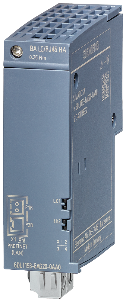 SIMATIC ET 200SP HA, bus adapter BA LC/RJ45, Media converter FOC/CU 1x LC FO connection and, 1x RJ45 connection for PROFINET