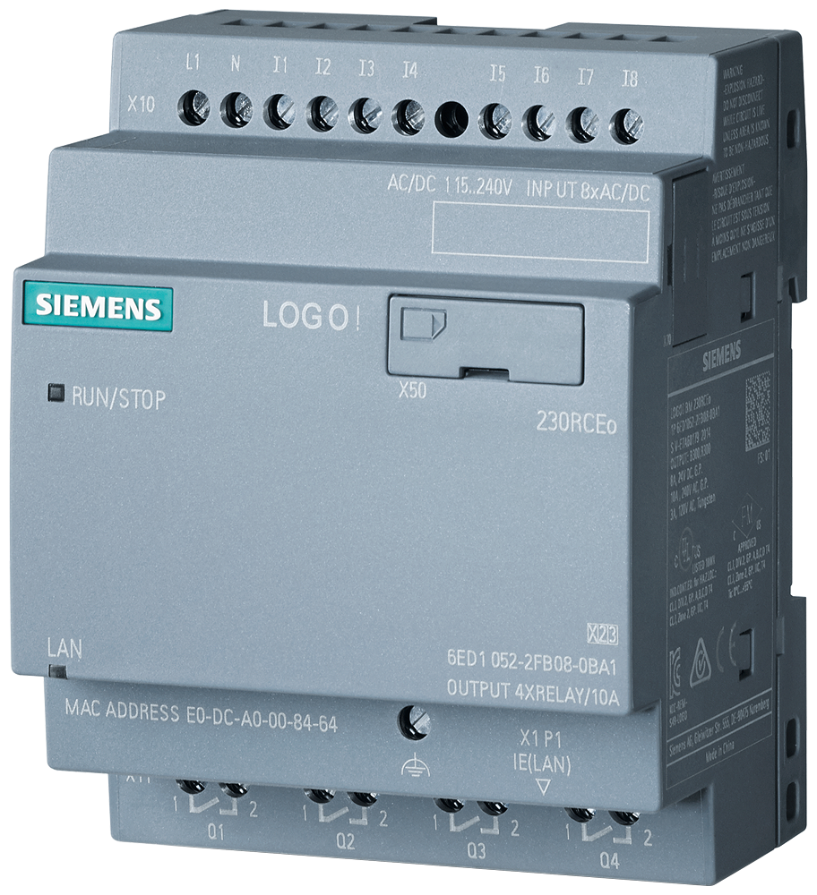 LOGO! 230RCEo, логический модуль, PS / I / O: 115 В / 230 В / реле, 8 DI / 4 DQ, без дисплея, память 400 блоков, модульно расширяемая, Ethernet, интегр. веб-сервер, журнал данных, определенные пользователем веб-страницы, стандартная карта microSD для LOGO! Soft Comfort V8.3 или более поздней версии, исполняемое облачное соединение старых проектов во всех LOGO! 8.3 базовый блок