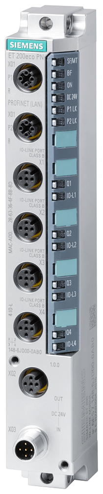 SIMATIC DP, ET 200eco PN, IO-Link master, 4 канала IO-Link, 4 x M12, степень защиты IP67