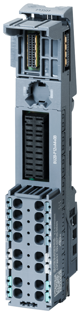 SIMATIC ET 200SP, БАЗОВЫЙ БЛОК BU20-P12+A4+0B, ТИП B0, КЛЕММЫ PUSH-IN, 4 ДОП. КЛЕММЫ, ПОДКЛЮЧЕНИЕ К СУЩ. НАГРУЗОЧНОЙ ГРУППЕ (БАЗОВОГО БЛОКА СЛЕВА), ШXВ: 20ММX117ММ