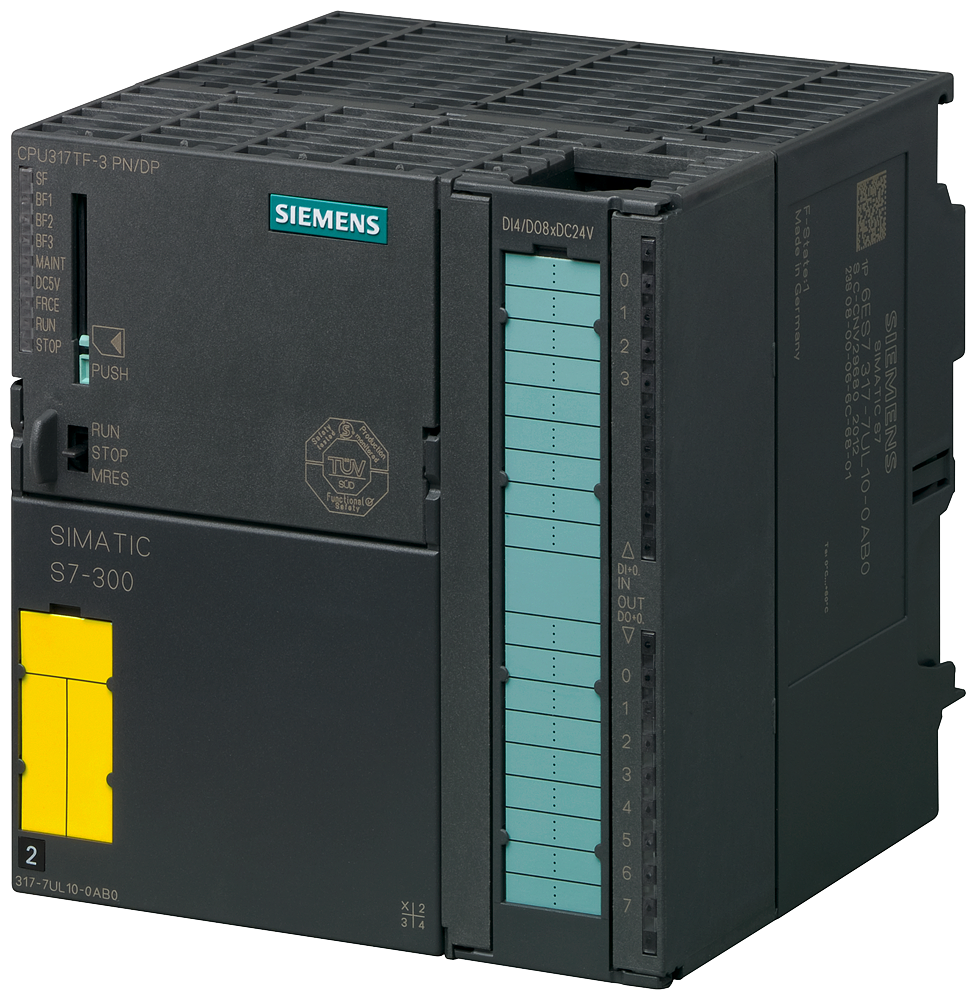 SIMATIC S7-300, CPU 317TF-3 PN/DP, ЦПУ С ФУНКЦИЯМИ ОБЫЧНОГО ПЛК, SAFETY И ТЕХНОЛОГИЧЕСКИМИ ФУНКЦИЯМИ, 1,5 МБАЙТА РАБОЧЕЙ ПАМЯТИ, 1. ИНТЕРФЕЙС MPI/DP 12МБИТ/С 2. ИНТЕРФЕЙС DP(DRIVE), 3. ИНТЕРФЕЙС ETHERNET PROFINET С 2Х-ПОРТОВЫМ КОММУТАТОРОМ, ВСТРОЕННЫЕ ТЕХНОЛОГИЧЕСКИЕ ВХ. /ВЫХ., НЕОБХОДИМЫ 40-ПОЛЮСНЫЙ ФРОНТАЛЬНЫЙ СОЕДИНИТЕЛЬ И КАРТА MMC 8 МБ МИН