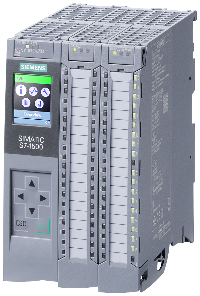 SIMATIC S7-1500, компактный центральный процессор CPU 1511C-1 PN, рабочая память 175 кБ и 1 МБ для данных, 16 дискретных входов, 16 дискретных выходов, 5 аналоговых входов, 2 аналоговых выхода, 6 высокоскоростных счётчиков, 1 интерфейс - PROFINET IRT с 2х-портовым коммутатором, производительность 60 нс на битовую операцию, фронтальные соединители в комплекте, необходима карта памяти SIMATIC MC