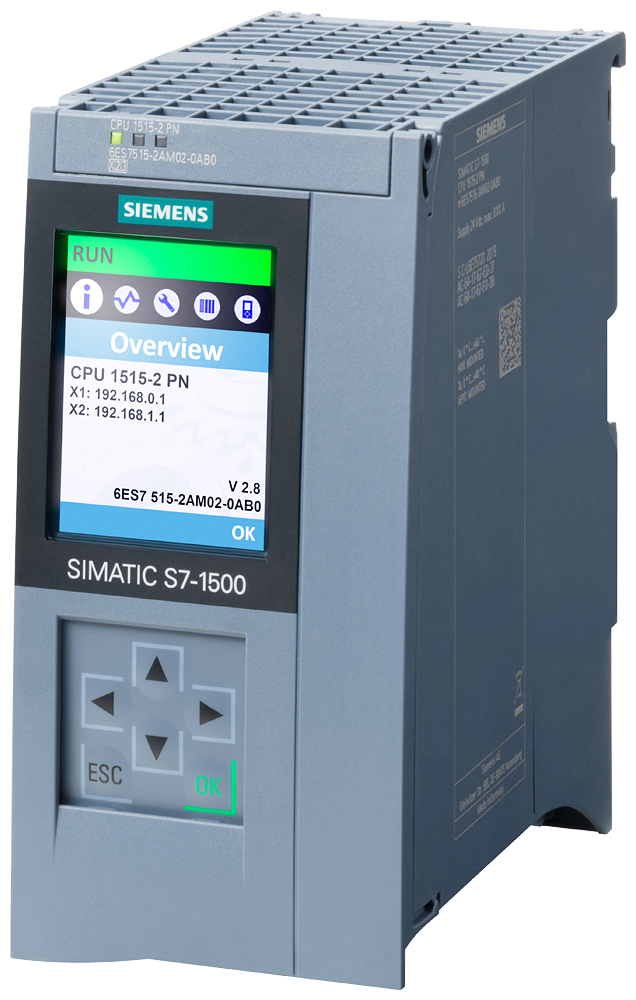 Замена на 6ES7515-2AN03-0AB0! SIMATIC S7-1500, CPU 1515-2 PN, центральный процессор с рабочей памятью 500 КБ для программы и 3 МБ для данных, 1-й интерфейс: PROFINET IRT с 2-портовым коммутатором, 2-й интерфейс: PROFINET RT, производительность 30 нс, SIMATIC Требуется карта памяти