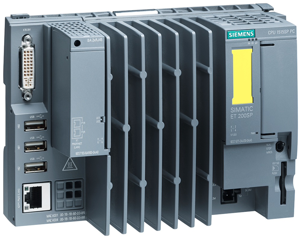 SIMATIC ET 200SP Open Controller, отказобезопасное ЦПУ CPU 1515SP PC F + HMI 2048PT, 4 ГБ RAM, 16 ГБ CFAST с предустановленной ОС WES 7 P 64 бит, с предустановленным отказобезопасным софт-ПЛК CPU 1505S F V2.0, с предустановленной WinCC RT Advanced V14 с 2048 PT