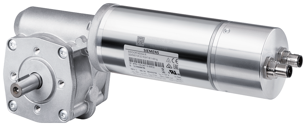 SIDOOR, мотор-редуктор MDG4 R, вал отбора мощности редуктора справа, с пазом и шпонкой A5x5 исполнение согласно DIN 6885, макс. Подвижная масса 400 кг, IP56, 2x M12 для раздельного подключения кабеля мотора, =30 В, -20 ... +50 °C