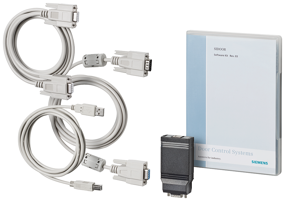 SIDOOR SOFTWARE KIT SOFTWARE KIT CONSISTING OF SIDOOR USER SOFTWARE WITH TRAVEL CURVE EDITOR AND OSCILLOSCOPE FUNCTION,SIEMENS HCS12 FIRMWARE LOADER, USB-ADAPTER, 1 USB CONNECTING CABLE, LENGTH 2 M,1 CONNECTING CABLE, LENGTH 2 M, WITH 9-PIN FEMALE SOCKET, D-SUB,AND 9-PIN MALE CONNECTOR, D-SUB, 1 CONNECTING CABLE, LENGTH 2 M, WITH TWO 9-PIN FEMALE SOCKETS
